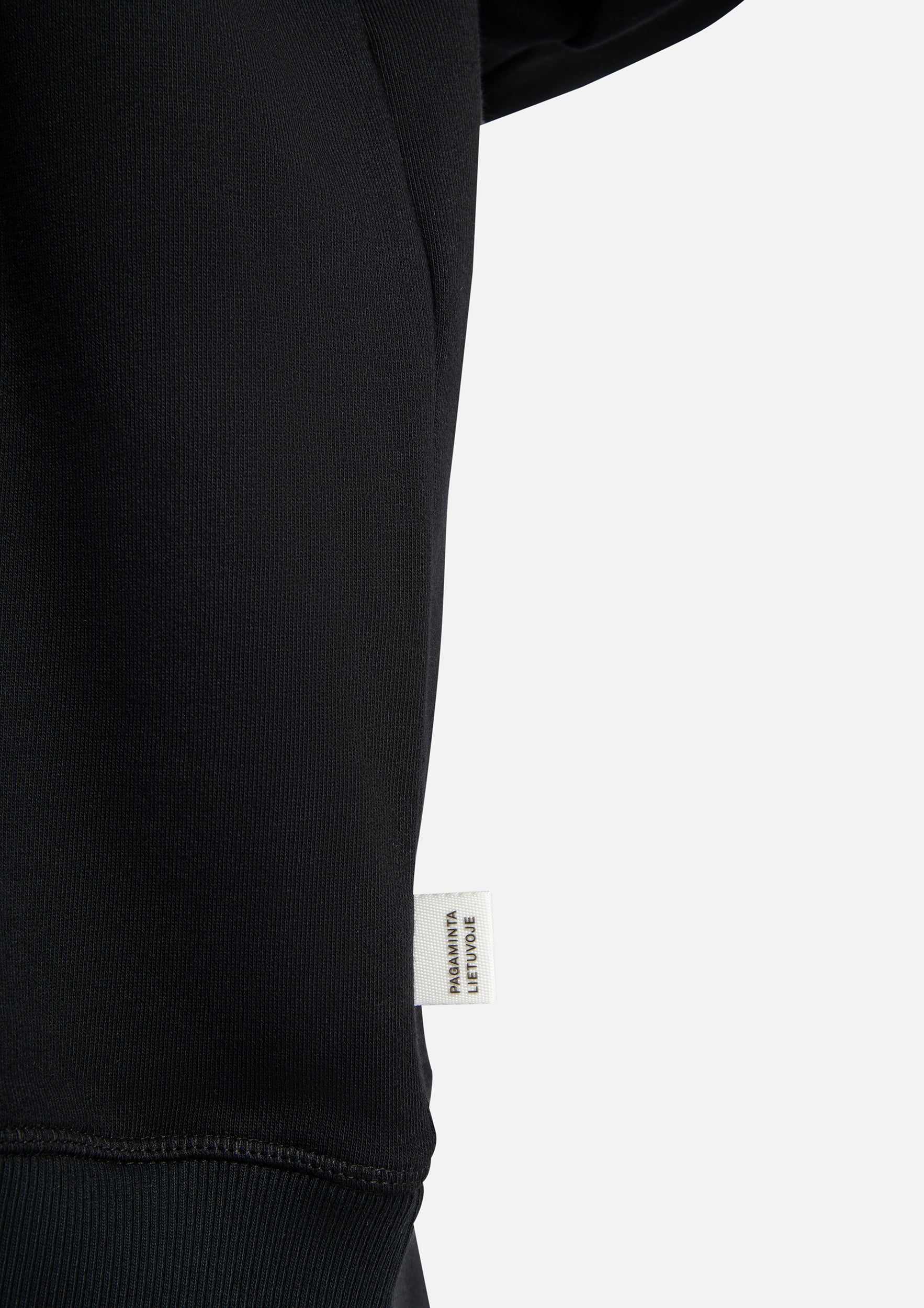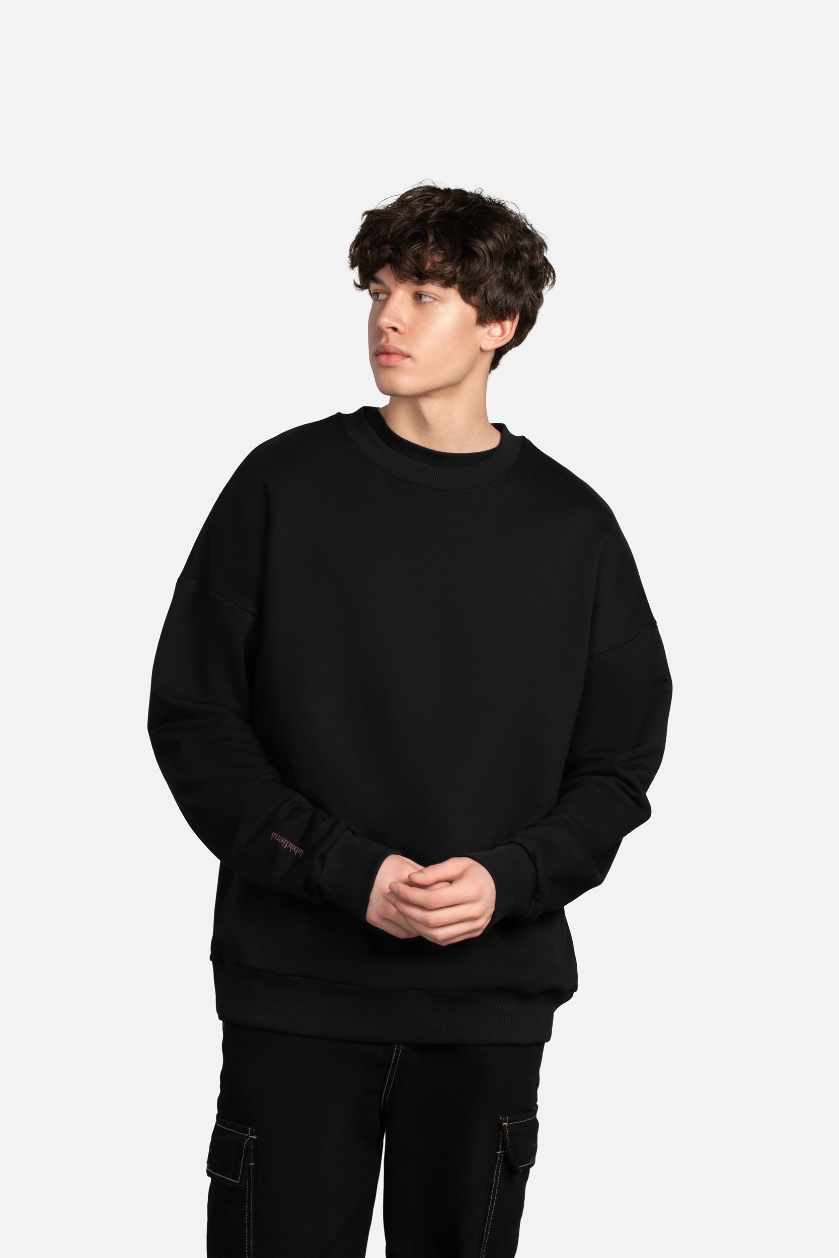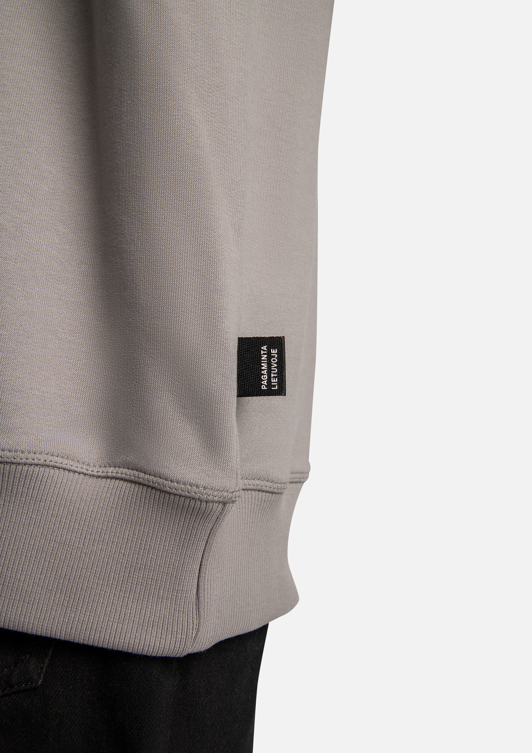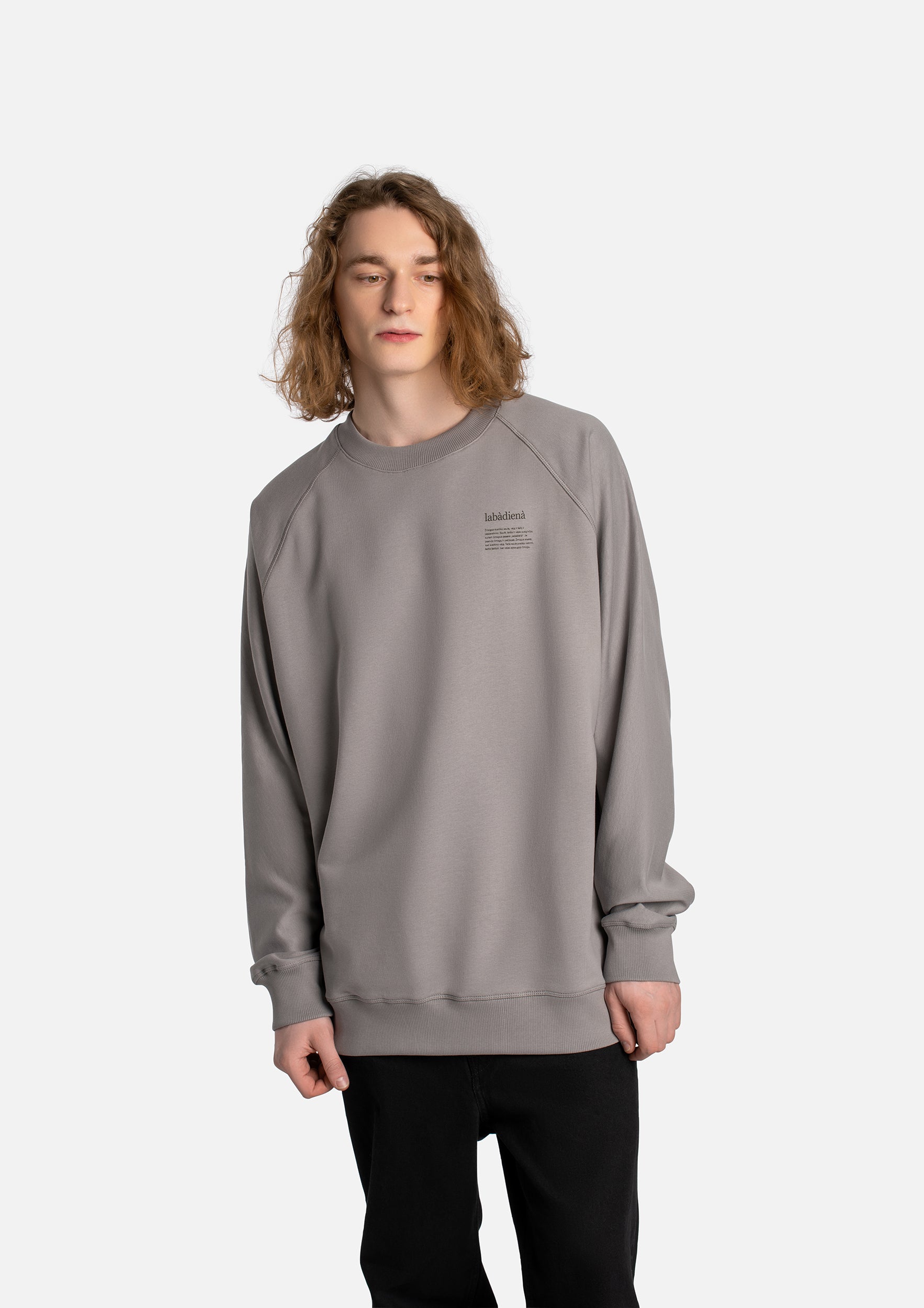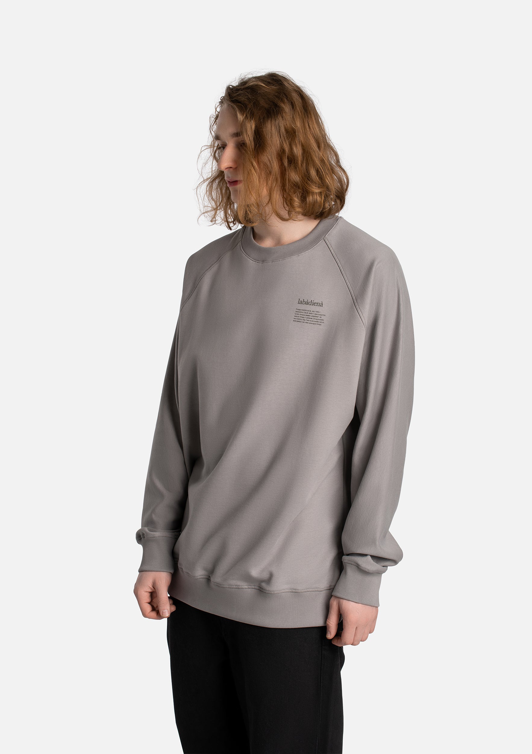 Padidinto reglano kirpimo džemperis, kontrastinis spaudas su logotipu ir tekstu ant krūtinės, kairėje, etiketė su simboliu kairėje pusėje gale.