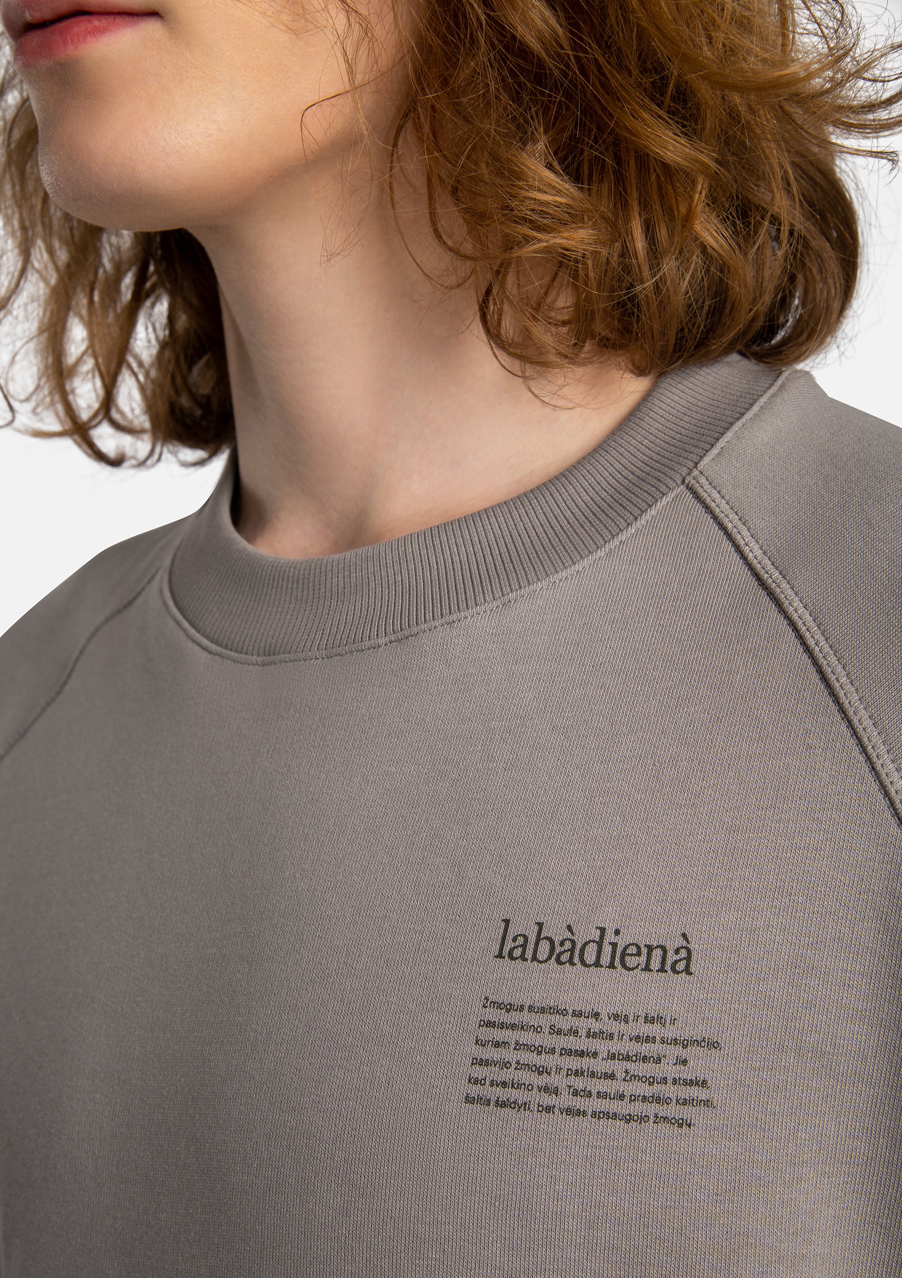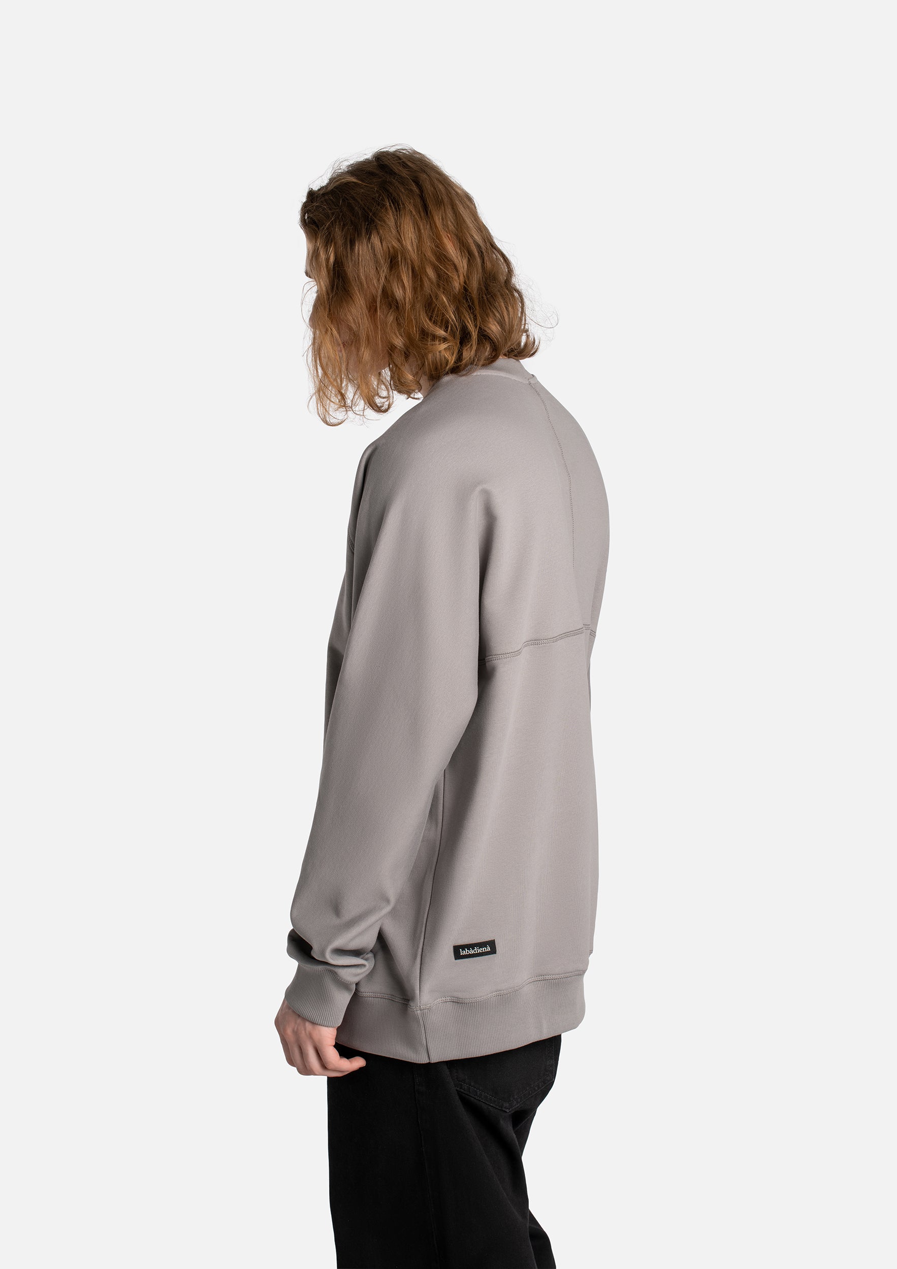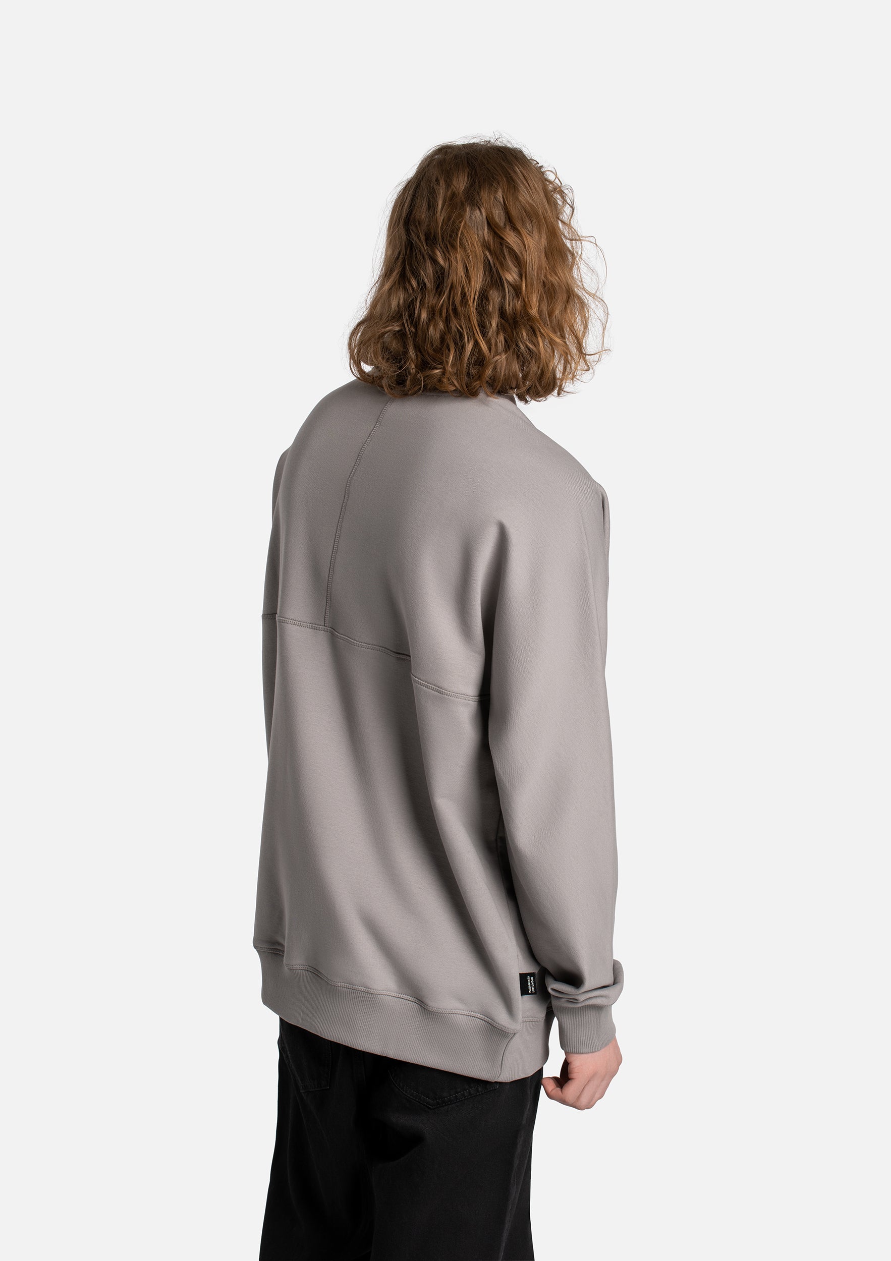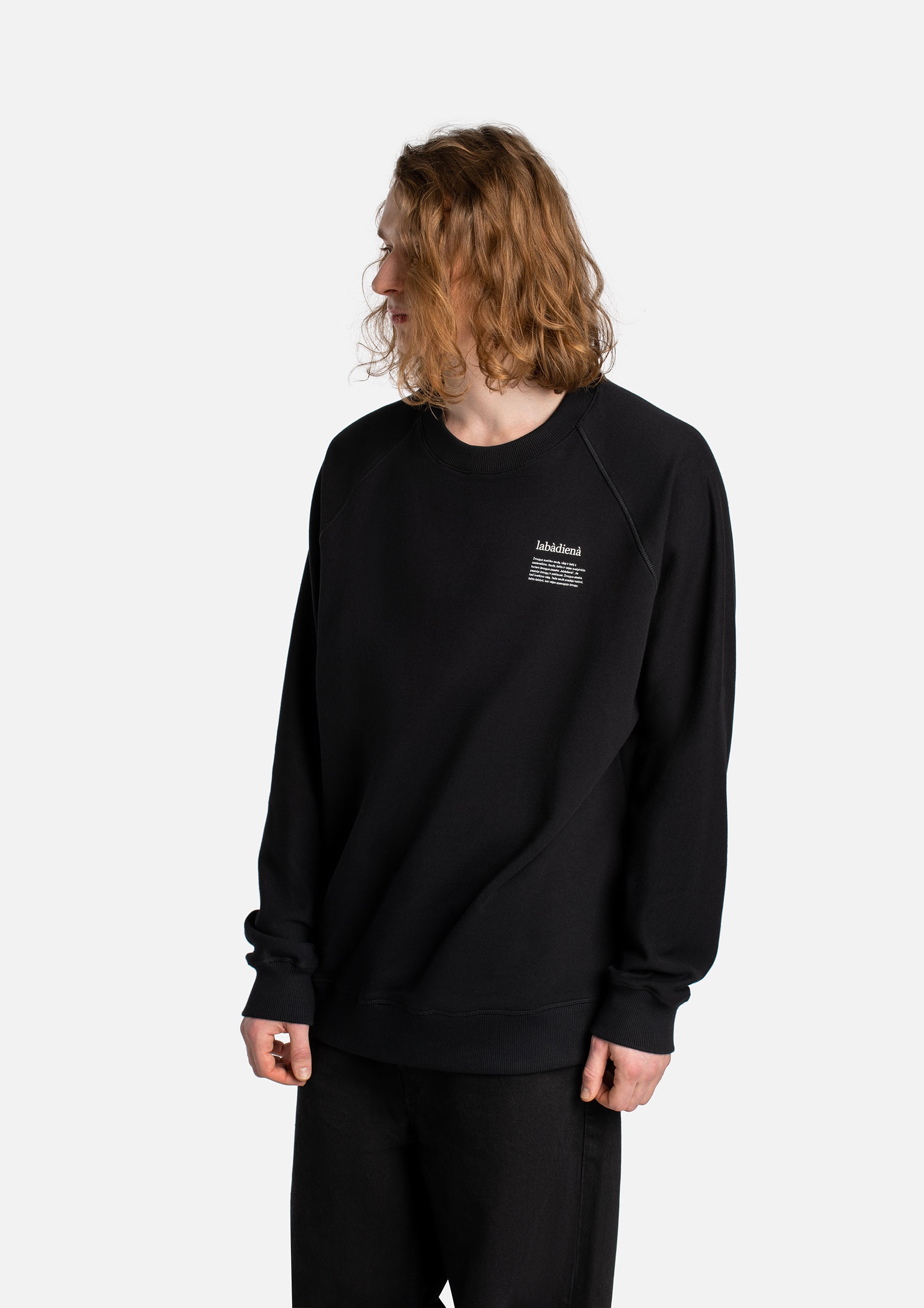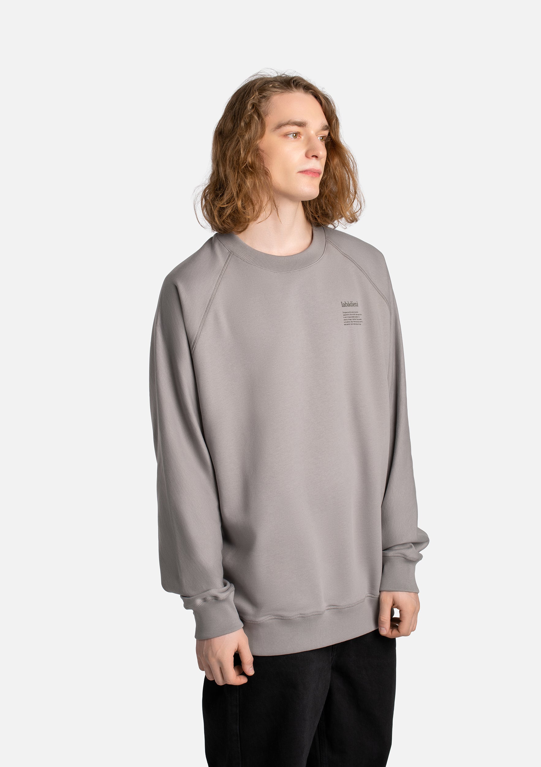Padidinto reglano kirpimo džemperis, kontrastinis spaudas su logotipu ir tekstu ant krūtinės, kairėje, etiketė su simboliu kairėje pusėje gale.