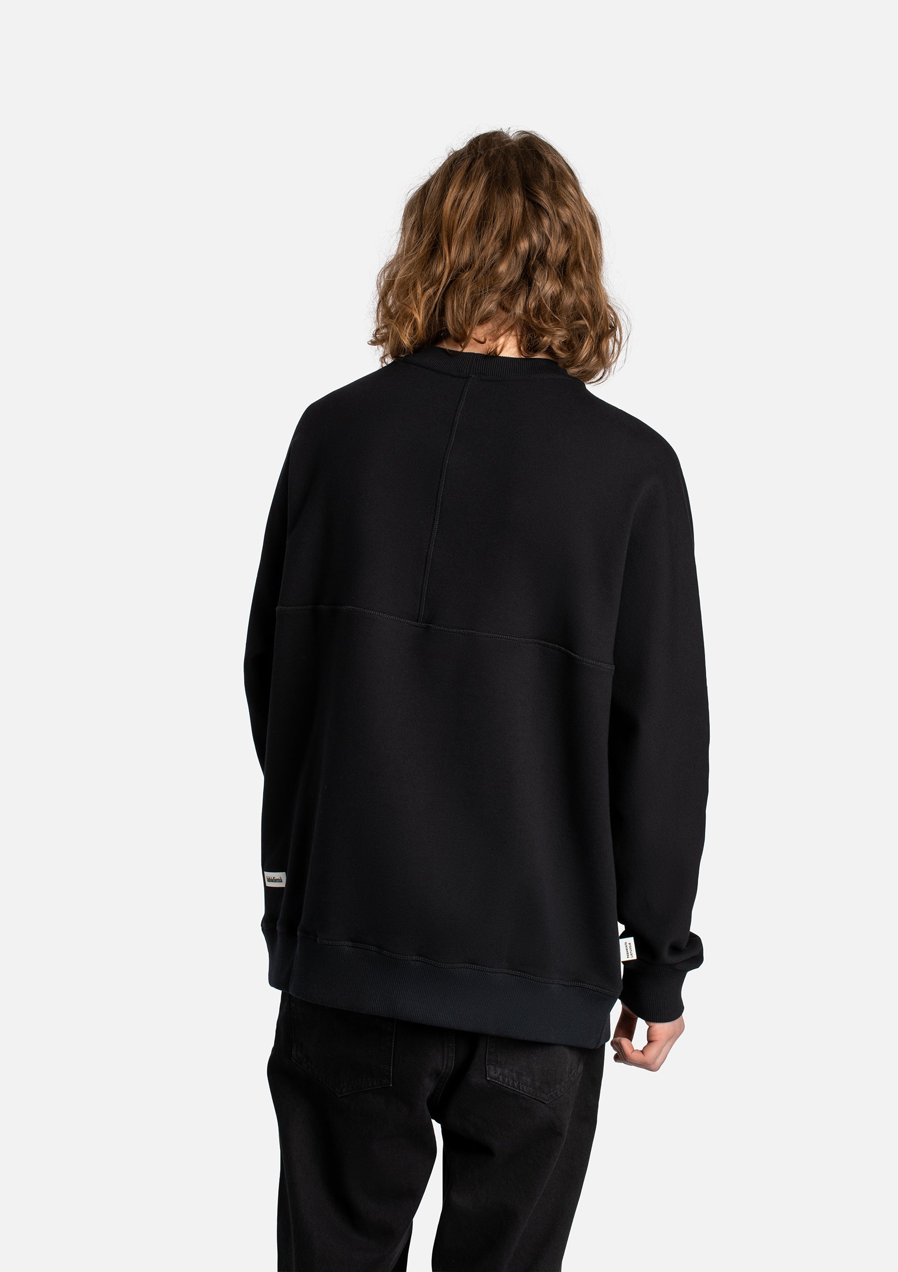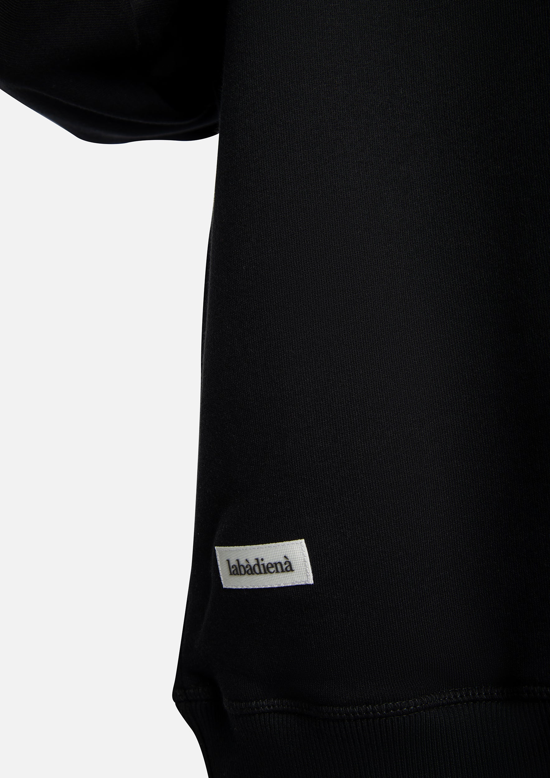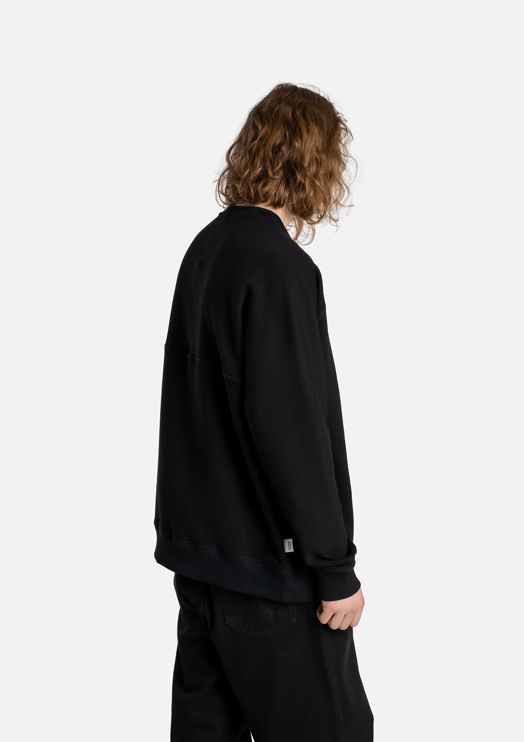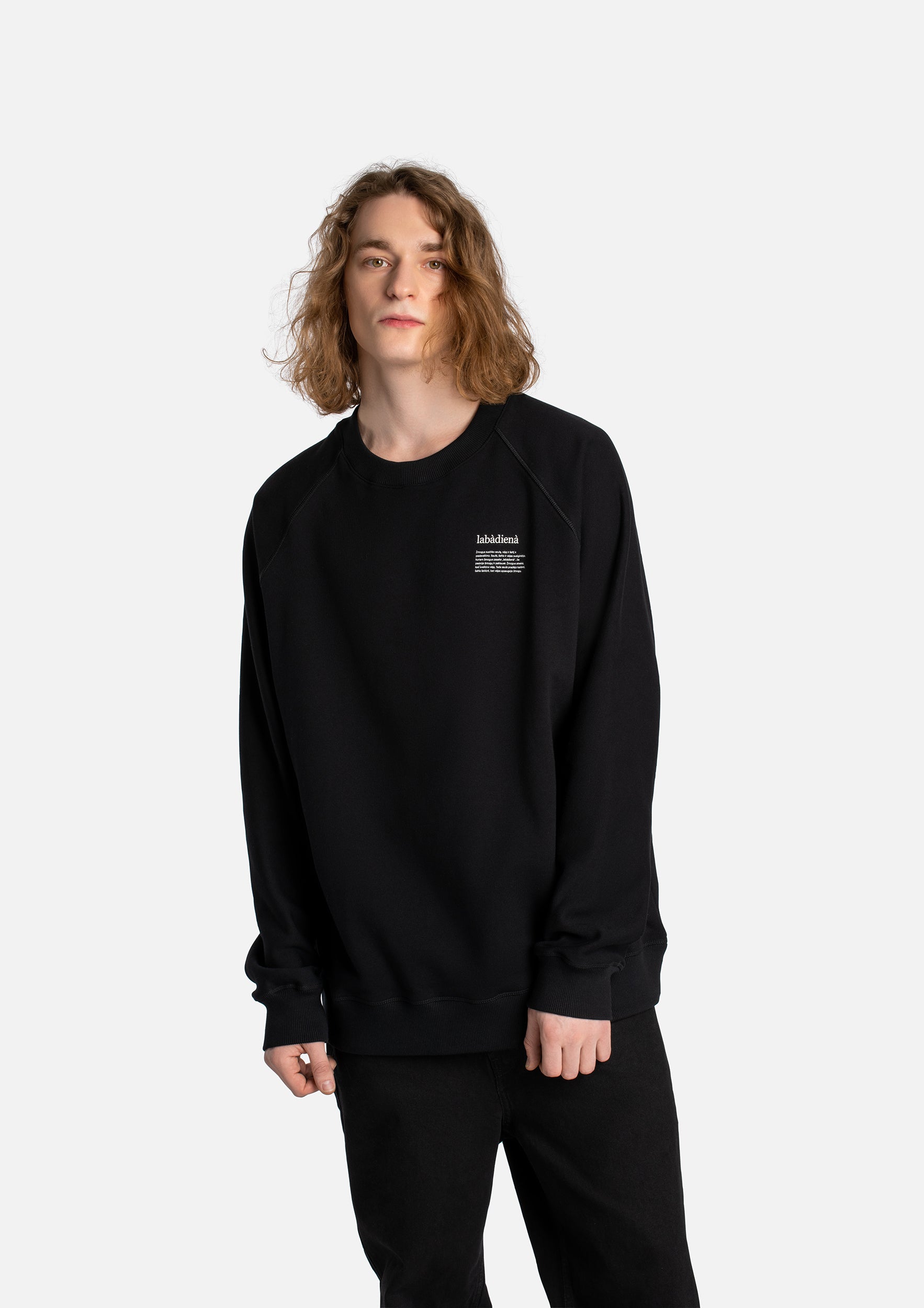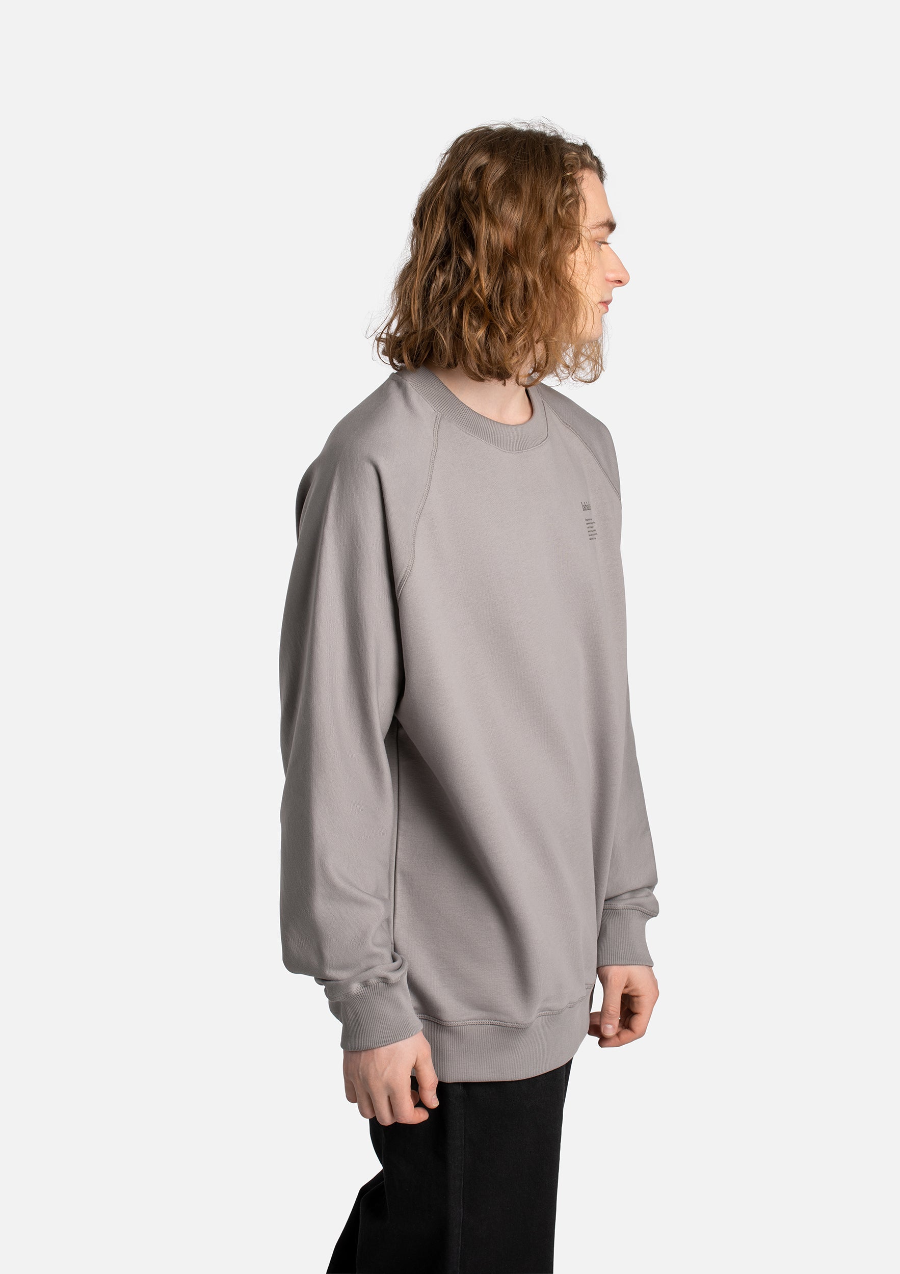 Padidinto reglano kirpimo džemperis, kontrastinis spaudas su logotipu ir tekstu ant krūtinės, kairėje, etiketė su simboliu kairėje pusėje gale.