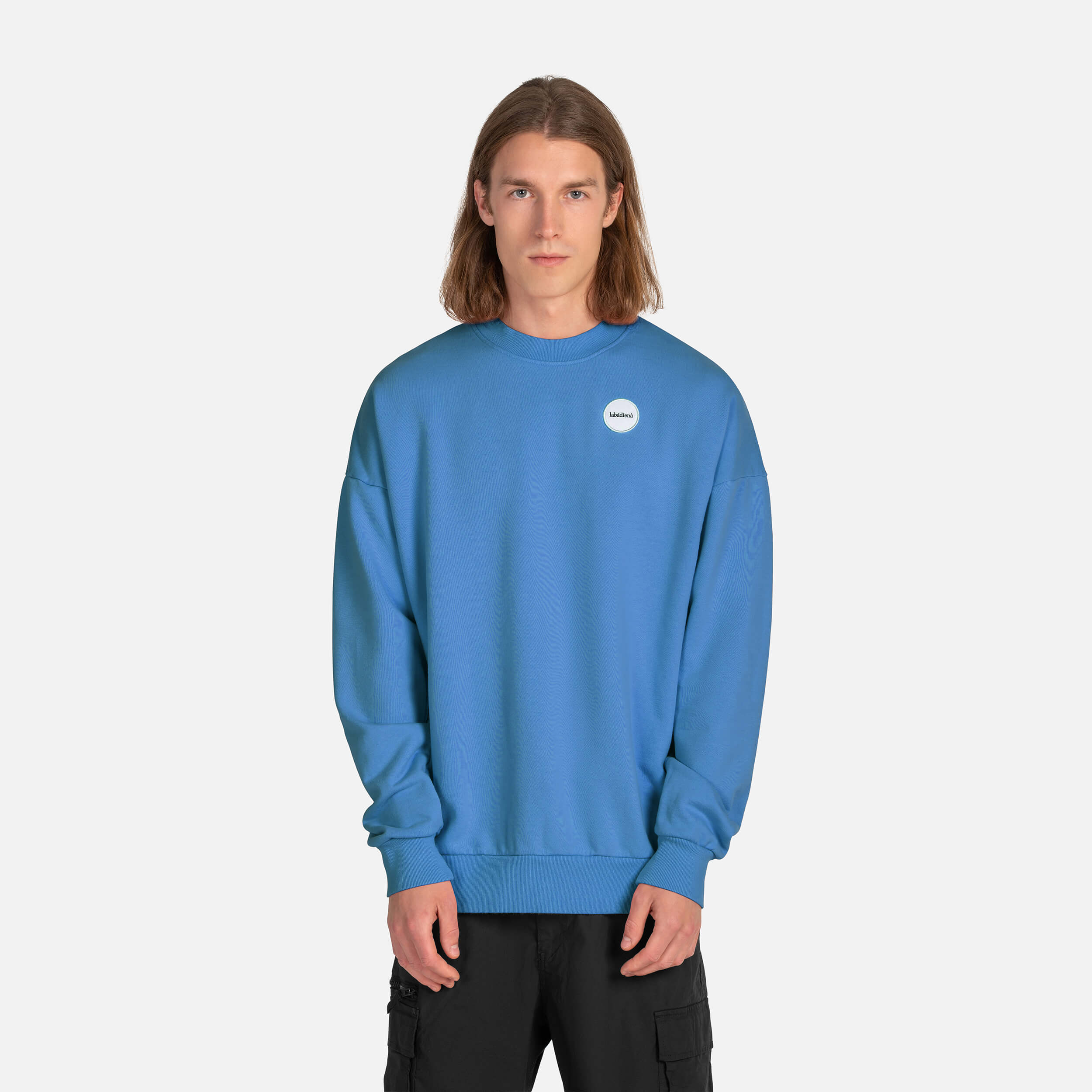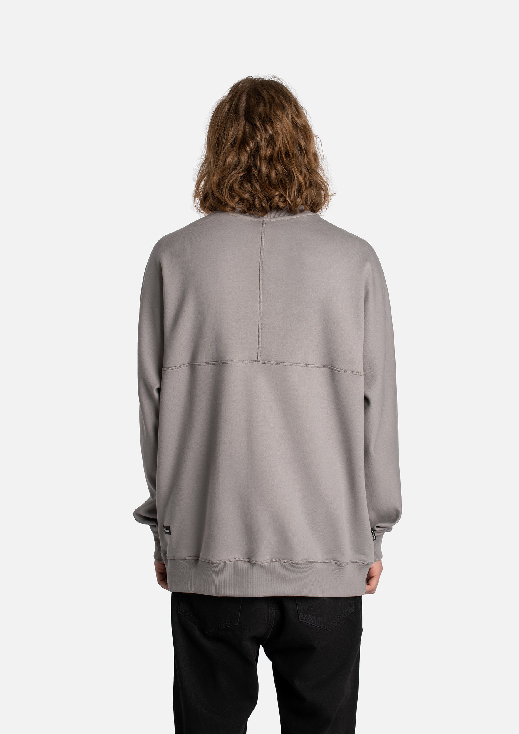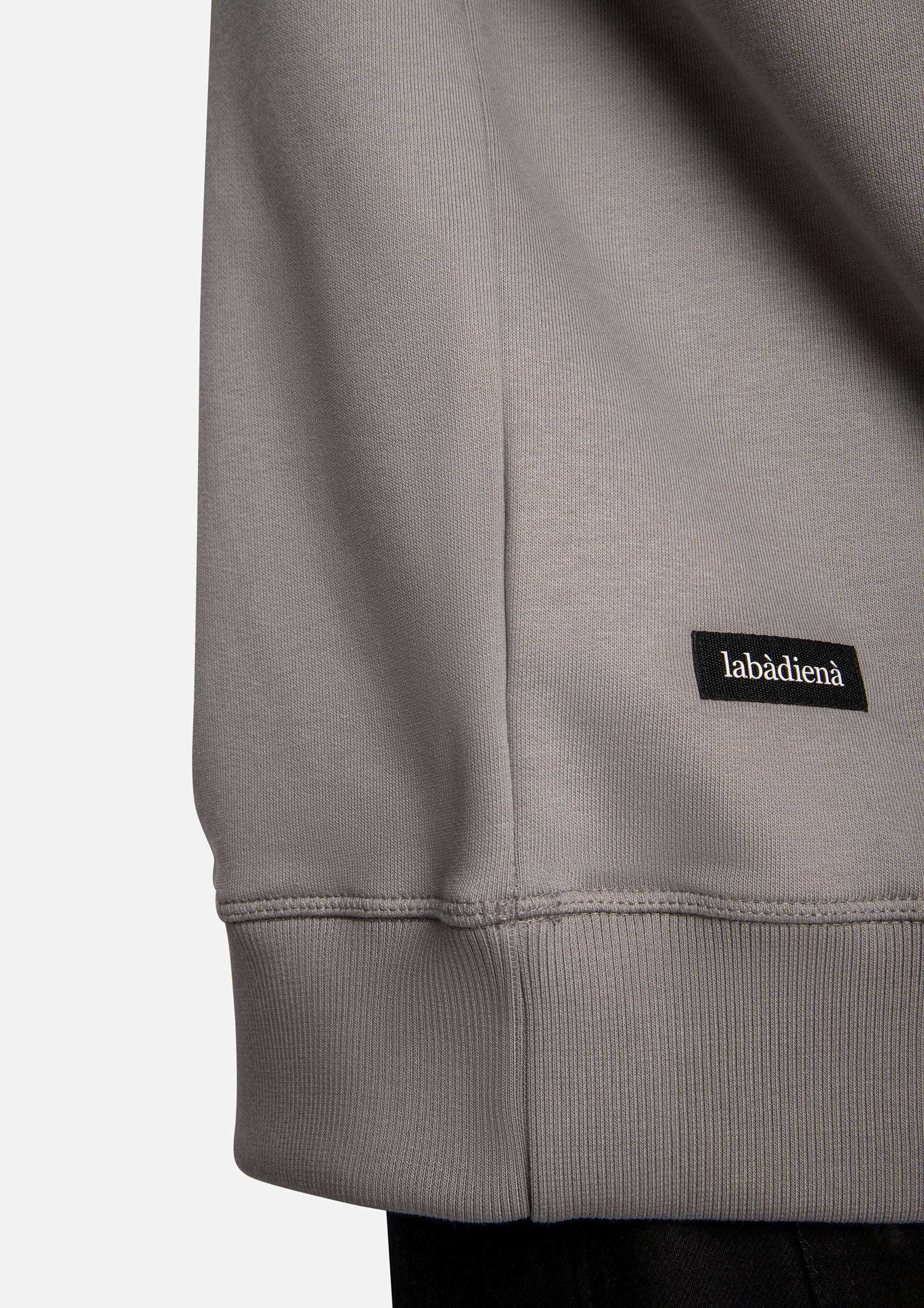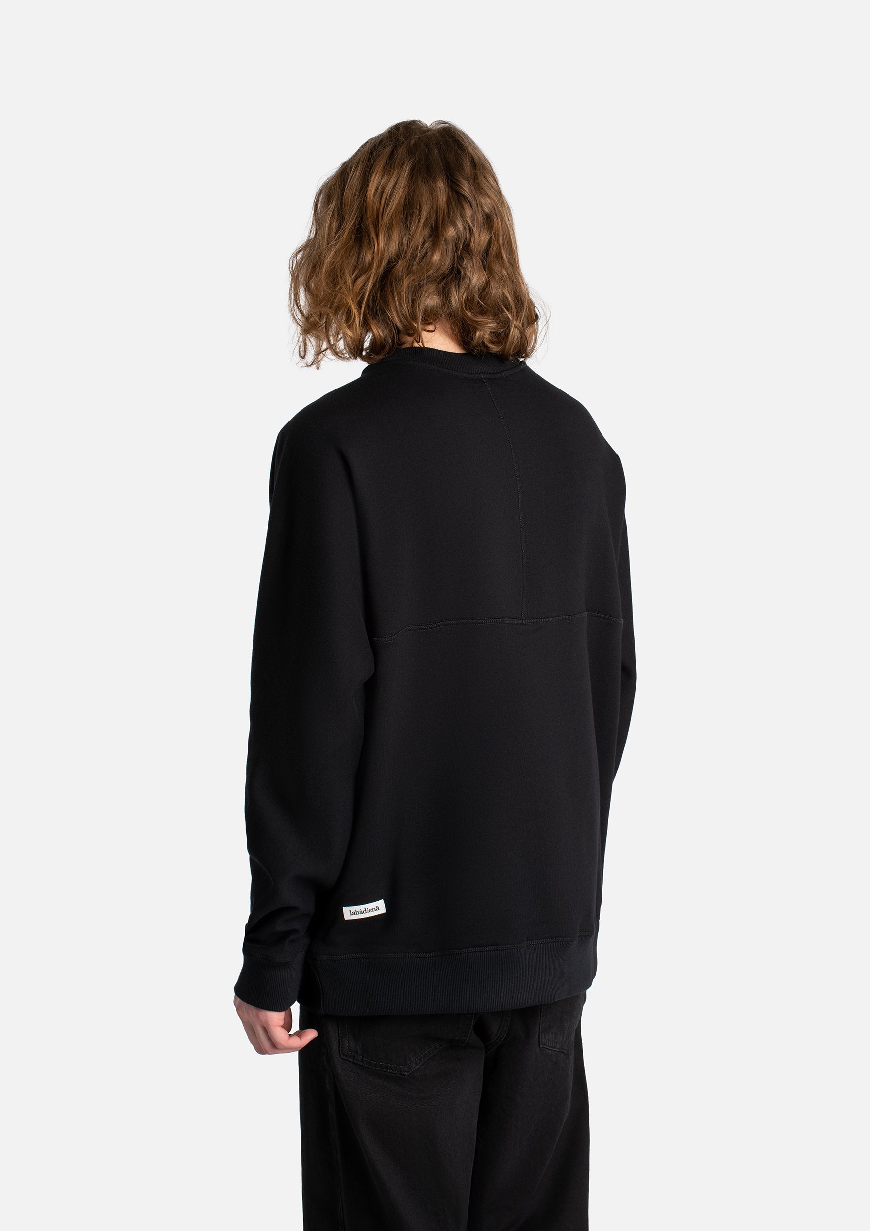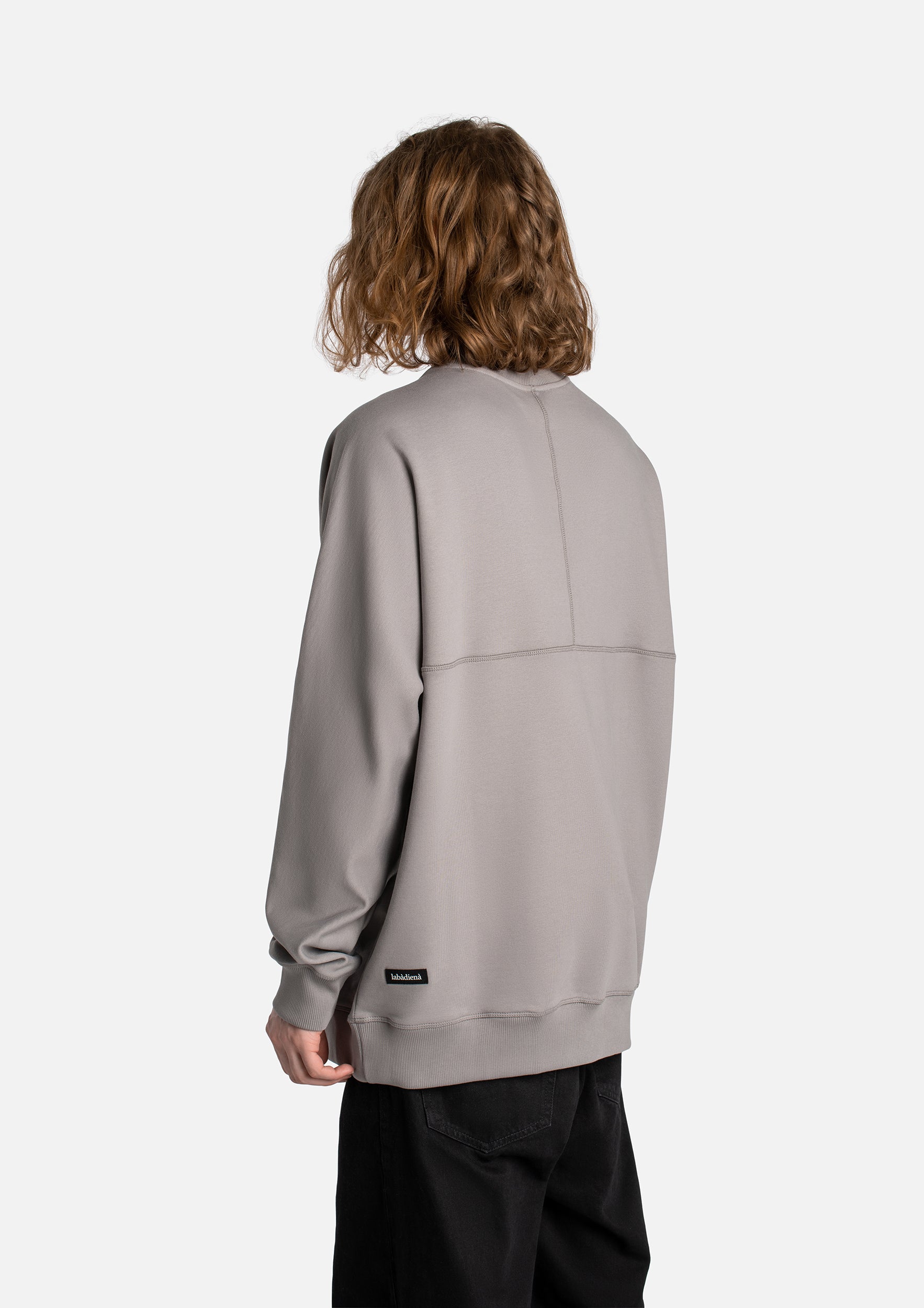 Padidinto reglano kirpimo džemperis, kontrastinis spaudas su logotipu ir tekstu ant krūtinės, kairėje, etiketė su simboliu kairėje pusėje gale.